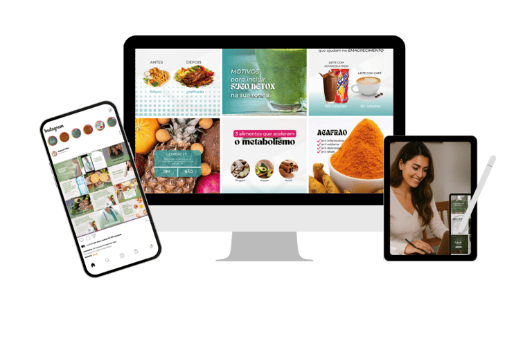 Nada de começar do zero, o kit já vem com templates, ideias e textos prontos, prontos para editar e vender.