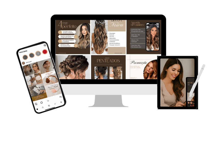 Pack criado para cabeleireiras e profissionais da beleza que querem atrair clientes com um visual moderno e coerente.