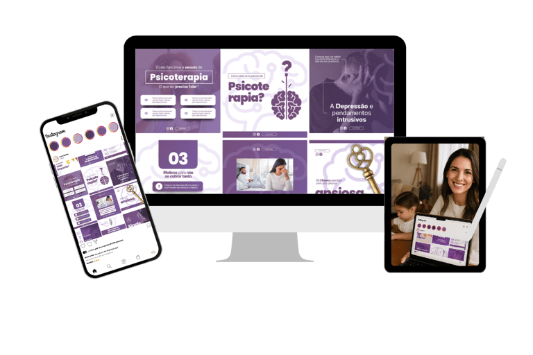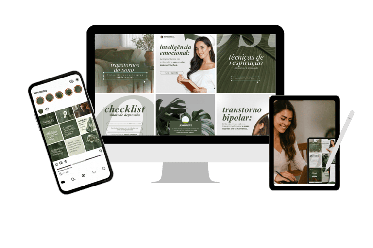 Pack de templates e frases cuidadosamente elaboradas para terapeutas, psicólogas e profissionais do autoconhecimento.