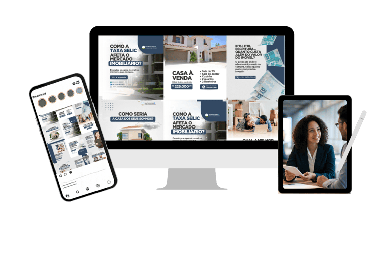 Destaque seus imóveis com posts profissionais e designs que passam confiança e credibilidade.
